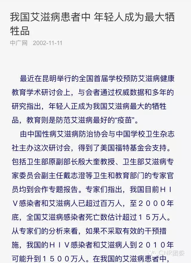 2002年11月,全國首屆學(xué)校預(yù)防艾滋病健康教育學(xué)術(shù)研討會在昆明舉行,我從會議材料和論文數(shù)據(jù)中,提煉出一篇消息《我國艾滋病患者中,年輕人成為最大犧牲品》,稿件發(fā)到央廣網(wǎng)上迅速被國內(nèi)主要新聞網(wǎng)站和門戶網(wǎng)站采用,本臺和中央電視臺新聞節(jié)目分別播發(fā)。這篇稿子在新浪網(wǎng)首頁當(dāng)天的擊率和訪問量,達(dá)百萬人次。