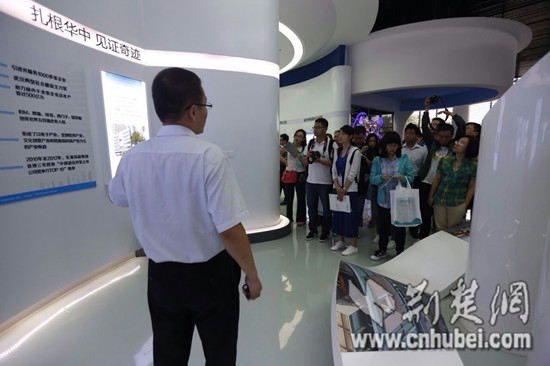 工作人員介紹鄂州梧桐湖新區(qū)發(fā)展情況