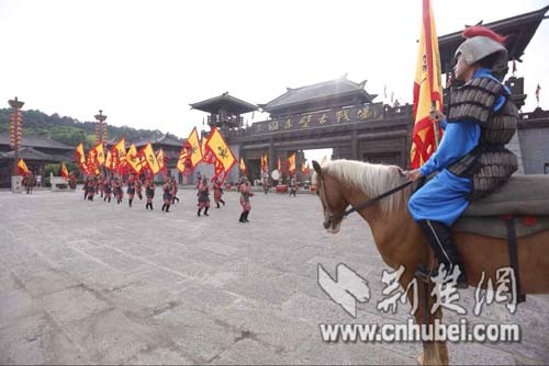 戰(zhàn)鼓擂響,城門緩開,旌旗獵獵,戰(zhàn)馬奔騰……三國赤壁古戰(zhàn)場以聲勢浩大的古代迎賓方式開園迎客,讓初到此地的采訪團成員大呼“新鮮,讓人身臨其境”。
