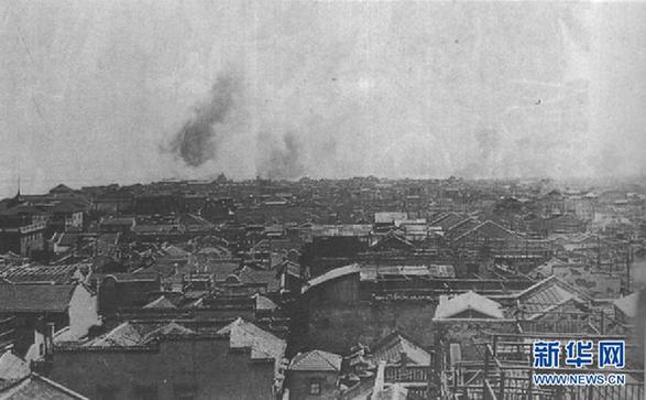 被日軍轟炸的漢口。新華社發(fā)(第二歷史檔案館提供)