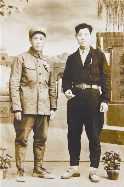 1952年,袁永福(左)在北京坦克學(xué)校學(xué)習(xí),來北京出差的指導(dǎo)員郭鴻聲(右)去看望他,倆人合影留念。