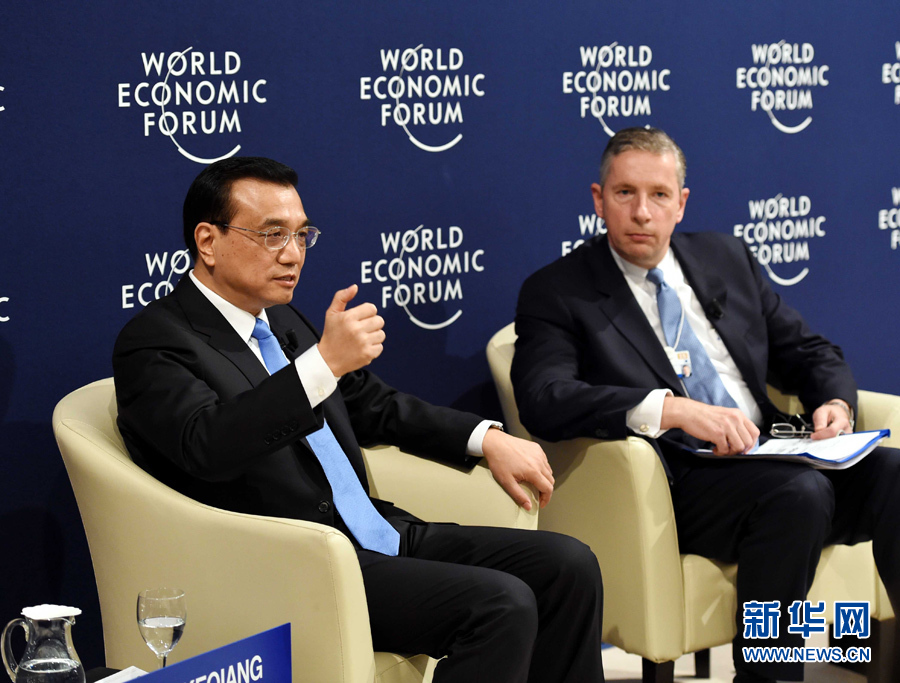 1月21日,中國國務(wù)院總理李克強(qiáng)在瑞士達(dá)沃斯出席與世界經(jīng)濟(jì)論壇國際工商理事會代表對話會。 新華社記者 饒愛民 攝