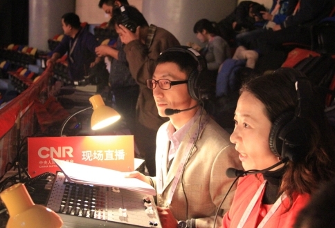 中央臺(tái)副總編輯劉曉龍和主持人鵬飛交流直播細(xì)節(jié)