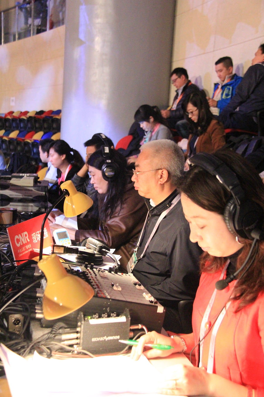中央臺直播人員準(zhǔn)備直播(央廣網(wǎng)記者 趙凈 攝)