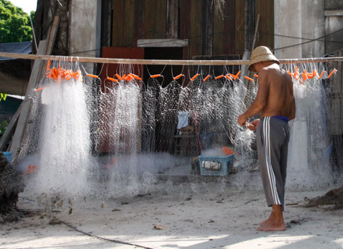 島上的漁民都住在傳統(tǒng)的木質(zhì)結(jié)構(gòu)住房里。木質(zhì)構(gòu)造是方便臺(tái)風(fēng)來時(shí)搬遷,為了防止被臺(tái)風(fēng)刮走,漁民的房屋基本上一般采用低矮設(shè)計(jì)。很多漁民家門口都掛著一張吊床,閑暇的時(shí)候,他們就躺在自家門口納涼或者午休。