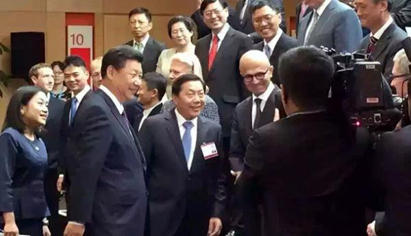 當(dāng)?shù)貢r(shí)間9月23日,美國(guó)西雅圖,中國(guó)國(guó)家主席習(xí)近平參觀微軟總部并與眾科技大佬見(jiàn)面。