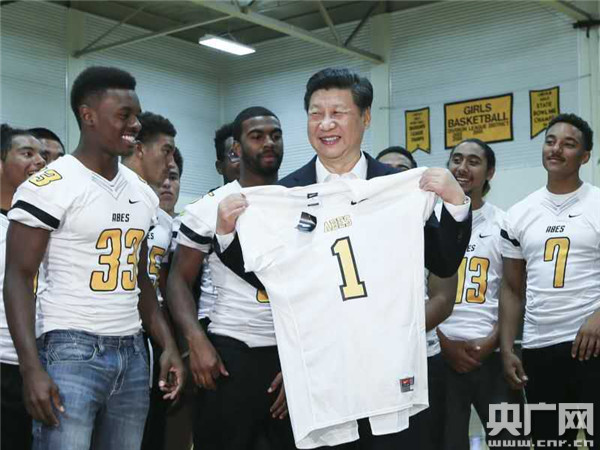 習(xí)近平向林肯中學(xué)贈送了介紹中國的圖書、乒乓球桌以及球具。習(xí)近平強(qiáng)調(diào):我也希望,我們兩國的青少年通過傳承乒乓外交的精神,加強(qiáng)交流、增進(jìn)友誼。讀萬卷書,行萬里路,所以你們今后啊,還要行萬里路。歡迎大家多到中國走走看看,體驗(yàn)和感知中國,通過同中國青少年的深入交流,同普通百姓的親密接觸,更全面、更深刻地了解中國,認(rèn)識中國,喜愛中國。