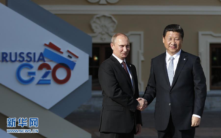 9月5日,二十國集團(tuán)領(lǐng)導(dǎo)人第八次峰會(huì)在俄羅斯圣彼得堡舉行。國家主席習(xí)近平出席會(huì)議并發(fā)表重要講話。這是峰會(huì)開始前,習(xí)近平抵達(dá)圣彼得堡康斯坦丁宮,受到俄羅斯總統(tǒng)普京迎接。新華社記者 鞠鵬 攝