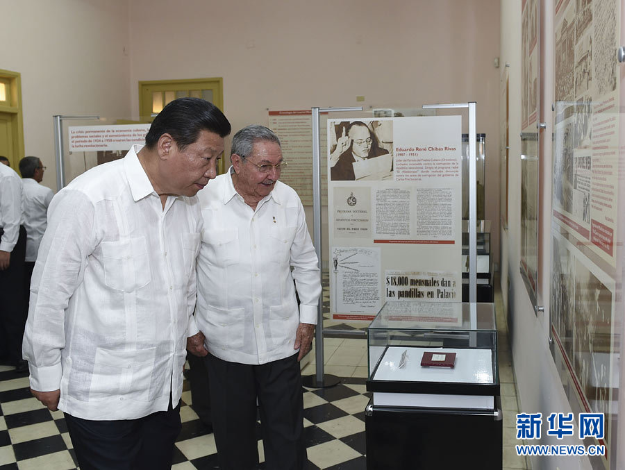 當(dāng)?shù)貢r間7月23日,國家主席習(xí)近平在古巴國務(wù)委員會主席兼部長會議主席勞爾·卡斯特羅全程陪同下,訪問古巴第二大城市、被稱為“英雄城”的圣地亞哥。這是習(xí)近平和勞爾參觀蒙卡達(dá)兵營舊址。新華社記者蘭紅光攝