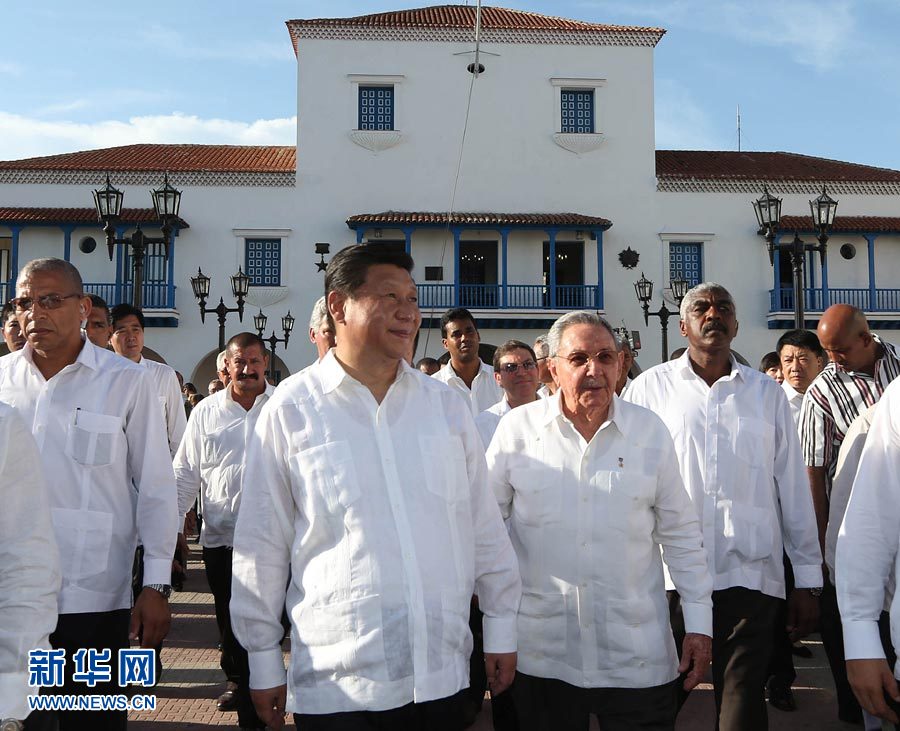 當(dāng)?shù)貢r(shí)間7月23日,國家主席習(xí)近平在古巴國務(wù)委員會(huì)主席兼部長會(huì)議主席勞爾·卡斯特羅全程陪同下,訪問古巴第二大城市、被稱為“英雄城”的圣地亞哥。這是習(xí)近平和勞爾參觀圣地亞哥市政府。新華社記者蘭紅光攝