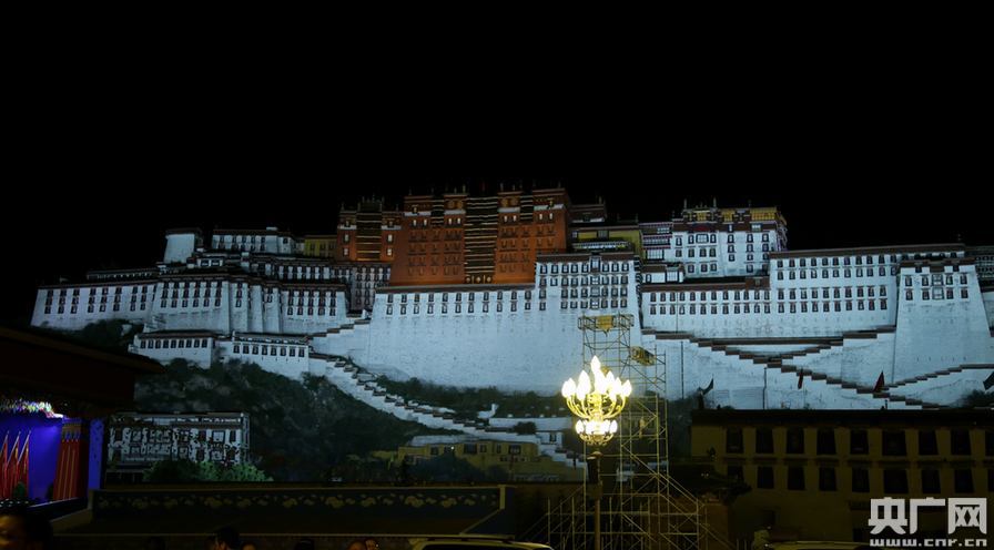 西藏自治區(qū)成立50周年慶祝大會(huì)在拉薩市布達(dá)拉宮廣場(chǎng)舉行,圖為清晨6時(shí)的布達(dá)拉宮。(央廣網(wǎng) 張瞳/攝)