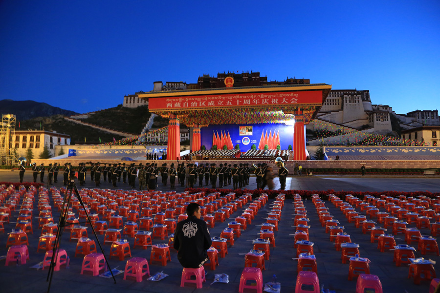 今年是西藏自治區(qū)成立50周年。9月8日上午10時(shí),西藏自治區(qū)成立50周年慶祝大會(huì)在拉薩市布達(dá)拉宮廣場(chǎng)舉行。圖為當(dāng)日清晨布達(dá)拉宮廣場(chǎng)景象。新華網(wǎng) 邢兵帥 攝