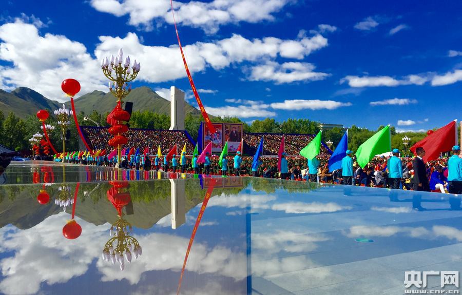 央廣網(wǎng)拉薩9月8日消息 今年是西藏自治區(qū)成立50周年。今天上午10時,西藏自治區(qū)成立50周年慶祝大會將在拉薩市布達拉宮廣場舉行。圖為慶祝大會現(xiàn)場(央廣網(wǎng) 張瞳/攝)