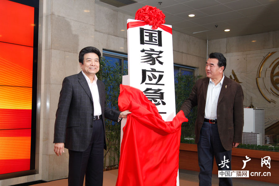 國家新聞出版廣電總局局長蔡赴朝、中央人民廣播電臺臺長王求為國家應(yīng)急廣播中心揭牌并與國務(wù)院應(yīng)急辦主任陳建安一起啟動了國家應(yīng)急廣播社區(qū)網(wǎng)站。