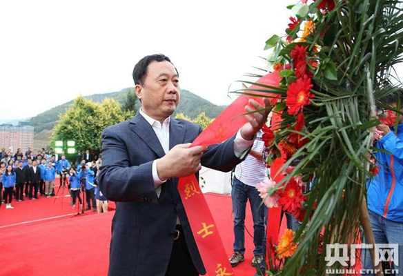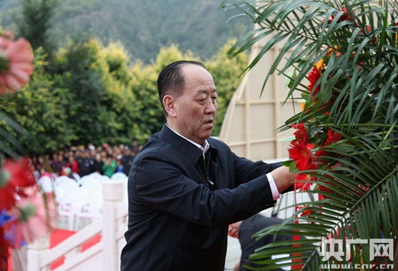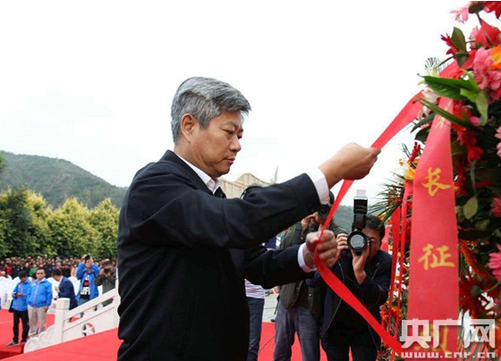 任賢良向中央紅軍長征勝利紀(jì)念碑敬獻(xiàn)花籃。