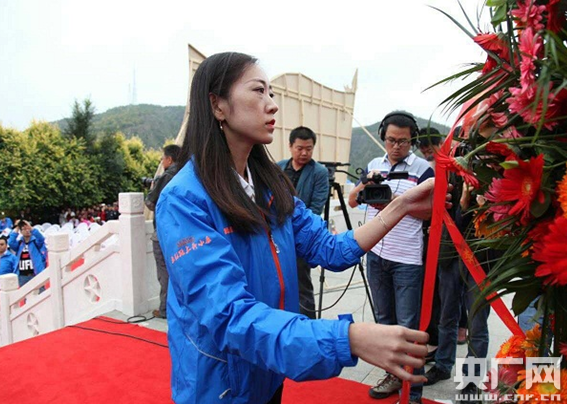 采訪團(tuán)代表向中央紅軍長征勝利紀(jì)念碑敬獻(xiàn)花籃。