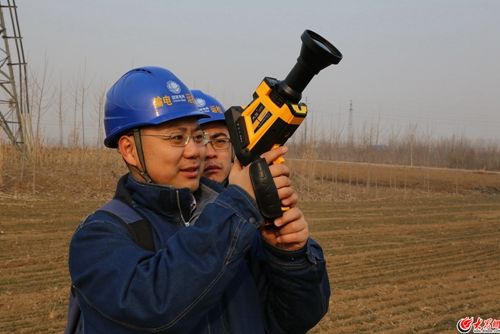 張曉用紅外設(shè)備檢測高壓線的溫度情況