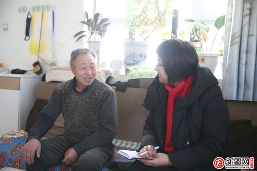 2017年1月21日,在新疆若羌縣鐵干里克鎮(zhèn)果勒吾斯塘村村民張躍家中,新疆網(wǎng)編輯薛玲正在采訪。王勇強 攝