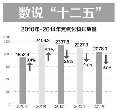 環(huán)境質(zhì)量有所改善。四項(xiàng)主要污染物即化學(xué)需氧量、氨氮、二氧化硫、氮氧化物排放量持續(xù)大幅下降,提前半年完成“十二五”規(guī)劃目標(biāo)。2014年,全國5種重點(diǎn)重金屬污染物(鉛、汞、鎘、鉻和類金屬砷)排放總量比2007年下降1/5。2014年,首批實(shí)施新環(huán)境空氣質(zhì)量標(biāo)準(zhǔn)的74個(gè)城市PM2.5平均濃度比2013年下降11.1%!笆濉鼻4年,我國單位工業(yè)增加值化學(xué)需氧量排放強(qiáng)度下降36%、單位工業(yè)增加值氨氮排放強(qiáng)度下降40%;全國單位GDP能耗連年下降,累計(jì)下降13.4%。