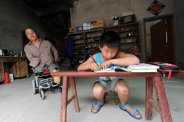 江西上饒弋陽縣少年徐佳浩,小小年紀(jì)顯得比同齡孩子要成熟,每天給父親按摩是他必做的事。徐佳浩就讀的弋陽縣港口鎮(zhèn)鏨山村中心小學(xué)離家5公里,崎嶇的山路,徐佳浩每次放學(xué),都是飛奔著往家趕。