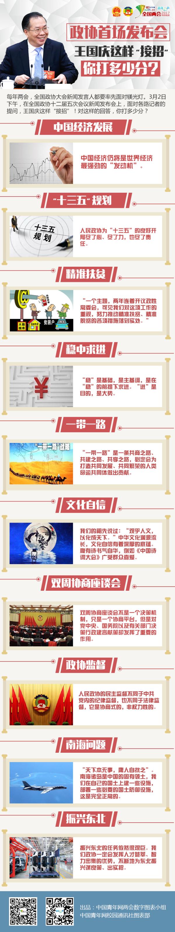 中國(guó)青年網(wǎng)北京3月3日電每年兩會(huì),全國(guó)政協(xié)大會(huì)新聞發(fā)言人都要率先面對(duì)鎂光燈。3月2日下午,在全國(guó)政協(xié)十二屆五次會(huì)議新聞發(fā)布會(huì)上,面對(duì)各路的提問(wèn),王國(guó)慶這樣"接招"!對(duì)這樣的回答,你打多少分?