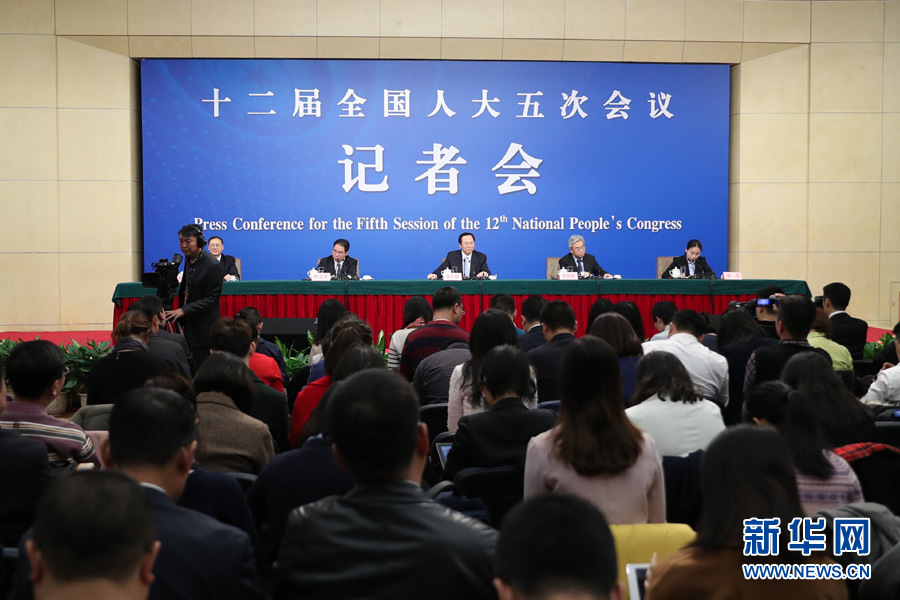 3月7日,十二屆全國人大五次會議舉行記者會,農(nóng)業(yè)部部長韓長賦、副部長張?zhí)伊志汀巴七M農(nóng)業(yè)供給側(cè)結(jié)構(gòu)性改革”的相關(guān)問題回答中外記者的提問。圖為記者會現(xiàn)場。新華網(wǎng)/中國政府網(wǎng) 翟子赫 攝