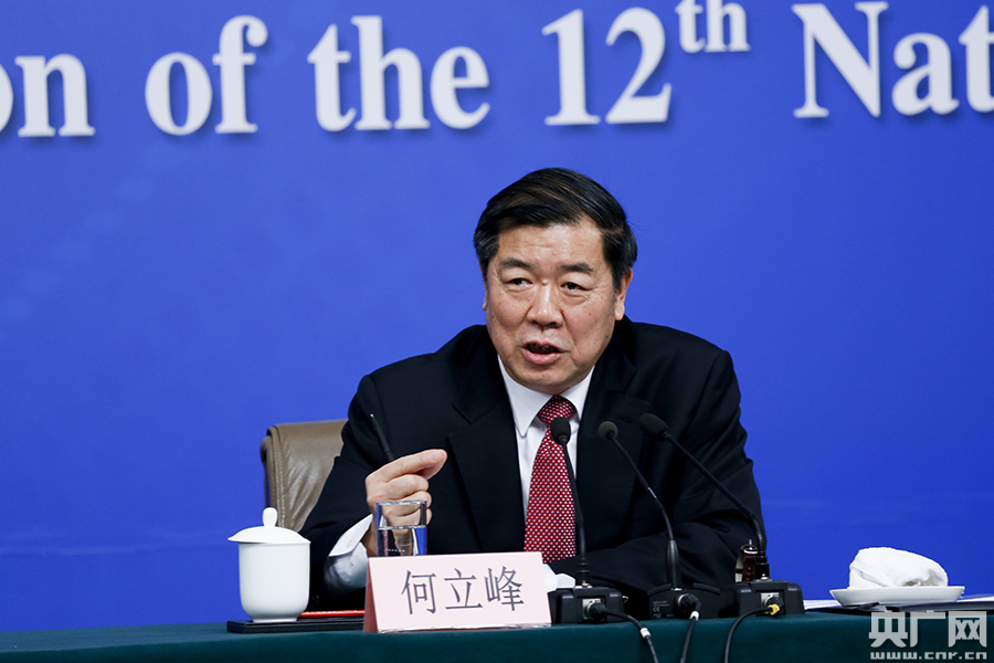 3月6日,十二屆全國人大五次會(huì)議舉行記者會(huì),邀請國家發(fā)展和改革委員會(huì)主任何立峰、副主任張勇、副主任寧吉喆就“經(jīng)濟(jì)社會(huì)發(fā)展與宏觀調(diào)控”的相關(guān)問題回答中外記者的提問。圖為何立峰在發(fā)布會(huì)上回答記者提問。央廣網(wǎng) 石昊鑫攝