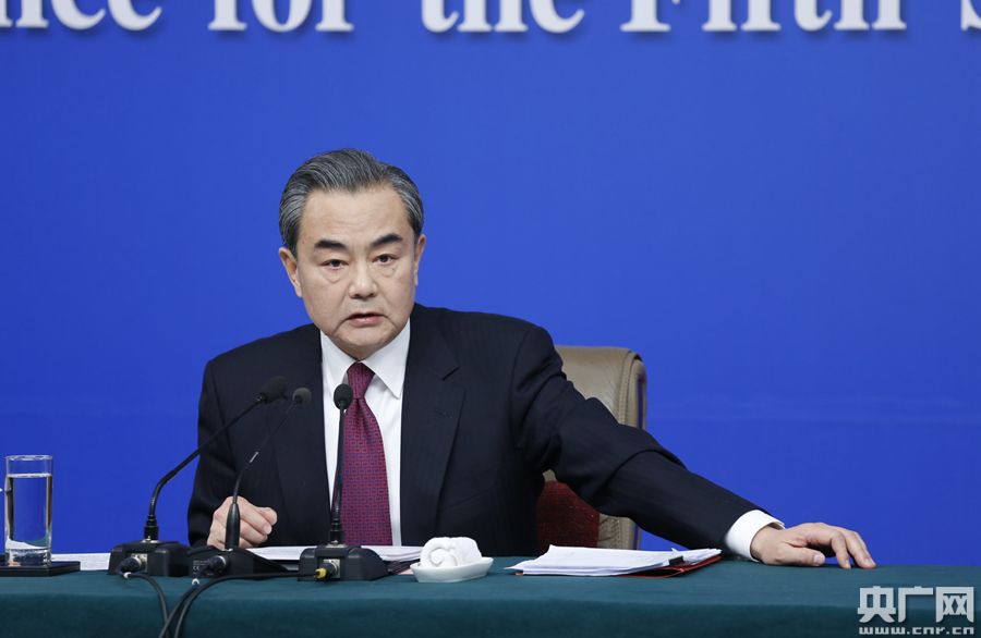 十二屆全國人大五次會(huì)議新聞中心于3月8日(星期三)10時(shí)在梅地亞中心多功能廳舉行記者會(huì),邀請(qǐng)外交部部長王毅就“中國的外交政策和對(duì)外關(guān)系”的相關(guān)問題回答中外記者的提問。圖為外交部部長王毅回答記者提問。央廣網(wǎng) 石昊鑫 攝