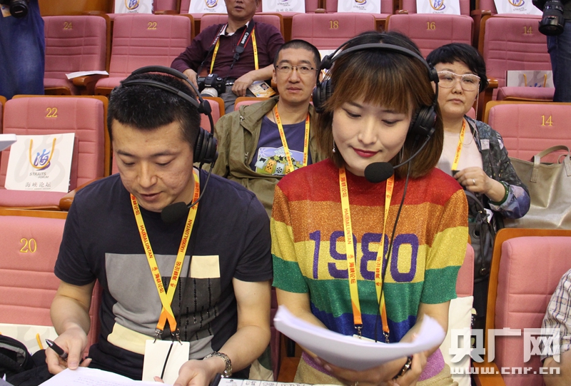 第九屆海峽論壇--論壇大會(huì)即將開(kāi)幕,中央人民廣播電臺(tái)第五套節(jié)目中華之聲將對(duì)大會(huì)情況進(jìn)行現(xiàn)場(chǎng)直播。主播趙飛、曲飛正在進(jìn)行準(zhǔn)備。