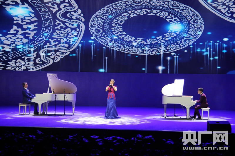 “第九屆海峽論壇大會”18日上午9點在福建廈門舉行,圖為大會開場文藝表演。第一個節(jié)目是由鋼琴和嗩吶合奏的新民樂《百鳥朝鳳》!栋嬴B朝鳳》是流行于山東、河南、河北等地的漢族民間樂曲,它以熱情歡快的旋律與百鳥和鳴之聲,表現(xiàn)了生氣勃勃的大自然景象,寓意著黑夜的消逝和朝陽升起的生動意境。(央廣網(wǎng)記者 劉一荻/攝)