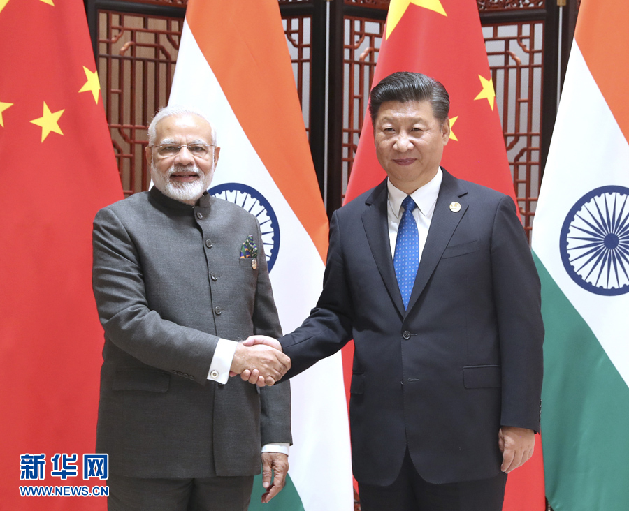 9月5日,國家主席習近平在廈門會見來華出席金磚國家領導人第九次會晤和新興市場國家與發(fā)展中國家對話會的印度總理莫迪。 新華社記者 馬占成攝