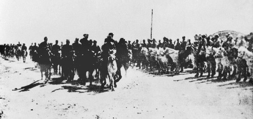 這是內(nèi)蒙古自治區(qū)政府成立大會(huì)結(jié)束后,自治區(qū)政府領(lǐng)導(dǎo)人騎馬檢閱內(nèi)蒙古人民自衛(wèi)軍。新華社發(fā)