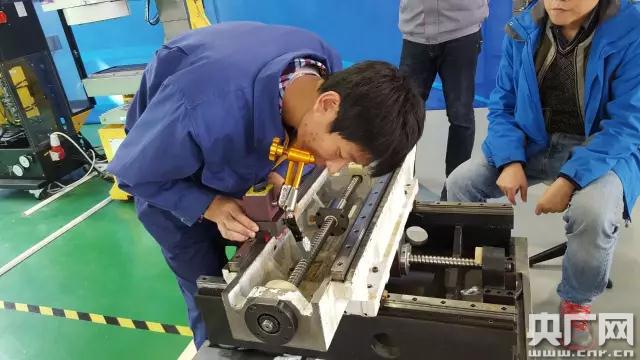 剛參加工作的半年時(shí)間里,黃實(shí)現(xiàn)所在的維修部,共接到過4800多個(gè)故障報(bào)告。身高1米8的他,450多次爬上三層樓高、不足半米寬的行床,在“獨(dú)木橋”般的平臺(tái)上操作,在機(jī)床淤泥里摸爬滾打的時(shí)候更是不計(jì)其數(shù),但遇到的問題永遠(yuǎn)不盡相同!霸趯W(xué)校的時(shí)我主要學(xué)機(jī)電,對數(shù)控機(jī)床‘零基礎(chǔ)’。好多數(shù)控機(jī)床都是進(jìn)口的,沒幾個(gè)人懂,(我)大約有半年帶著面包、饅頭,泡在車間里,沒老師,沒教材,有一些非常厚的說明書。對著設(shè)備捋線,調(diào)試各種各樣的參數(shù)。把這些代碼和參數(shù)都抄在小紙條上,隨時(shí)拿出來背,上千個(gè)技術(shù)參數(shù)刻在了腦子里,真是鉆進(jìn)去了。半年后發(fā)現(xiàn)我這個(gè)車間報(bào)修率越來越少!