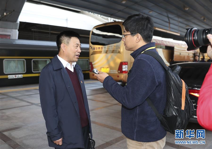 10月16日,來(lái)自黑龍江省的黨的十九大代表抵達(dá)北京。這是李鳳玉代表(左)在接受記者采訪。 新華社記者 丁海濤 攝