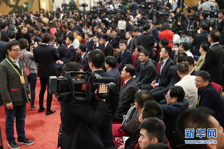 10月25日,黨的十九屆中央委員會第一次全體會議新選出的中央政治局常委將同中外記者見面。圖為中外記者在見面會現(xiàn)場進(jìn)行準(zhǔn)備工作。新華網(wǎng) 翟子赫 攝