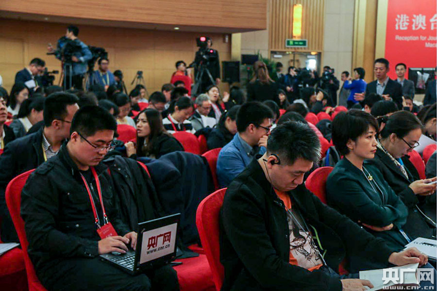 10月19日上午10:00,十九大新聞中心將在梅地亞中心二層新聞發(fā)布廳舉辦第一場(chǎng)記者招待會(huì)。將邀請(qǐng)中共中央紀(jì)律檢查委員會(huì)副書(shū)記、監(jiān)察部部長(zhǎng)、國(guó)家預(yù)防腐敗局局長(zhǎng)楊曉渡,中共中央組織部副部長(zhǎng)齊玉介紹加強(qiáng)黨建工作和全面從嚴(yán)治黨情況,并回答記者提問(wèn)。 圖為記者招待會(huì)現(xiàn)場(chǎng)等待的媒體記者們。(央廣網(wǎng)記者 杜靜攝)