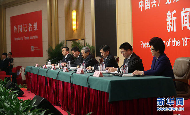 10月22日,十九大新聞中心舉辦記者招待會(huì),邀請(qǐng)教育部、民政部、人力資源社會(huì)保障部、住房城鄉(xiāng)建設(shè)部、國(guó)家衛(wèi)生計(jì)生委相關(guān)負(fù)責(zé)人介紹滿足人民新期待,保障改善民生有關(guān)情況,并回答記者提問(wèn)。圖為記者招待會(huì)現(xiàn)場(chǎng)。新華網(wǎng) 郝廣鵬攝