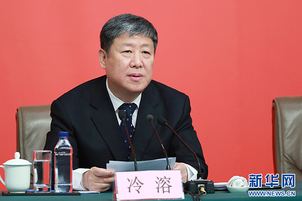 10月26日,中國共產(chǎn)黨第十九次全國代表大會新聞發(fā)言人在梅地亞新聞發(fā)布廳召開專題新聞發(fā)布會,請有關(guān)方面負責人解讀十九大報告,并回答記者關(guān)心的問題。圖為中央文獻研究室主任冷溶。新華網(wǎng) 翟子赫 攝