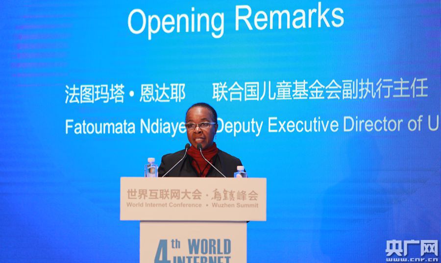 央廣網(wǎng)烏鎮(zhèn)12月4日消息(記者 王永康)今日上午九點,在烏鎮(zhèn)互聯(lián)網(wǎng)國際會展中心雨讀廳進行“守護未來:未成年人網(wǎng)絡(luò)保護論壇”。該論壇圍繞“未成年人網(wǎng)絡(luò)保護”,邀請中外政府官員、國際組織和青年組織代表、知名學(xué)者以及青少年代表進行研討。圖為聯(lián)合國兒童基金會副執(zhí)行主任法圖瑪塔·恩達耶致辭。