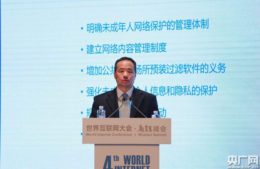 央廣網(wǎng)烏鎮(zhèn)12月4日消息(記者 王永康)今日上午九點(diǎn),在烏鎮(zhèn)互聯(lián)網(wǎng)國(guó)際會(huì)展中心雨讀廳進(jìn)行“守護(hù)未來(lái):未成年人網(wǎng)絡(luò)保護(hù)論壇”。該論壇圍繞“未成年人網(wǎng)絡(luò)保護(hù)”,邀請(qǐng)中外政府官員、國(guó)際組織和青年組織代表、知名學(xué)者以及青少年代表進(jìn)行研討。圖為中國(guó)人民大學(xué)常務(wù)副校長(zhǎng)、中國(guó)法學(xué)會(huì)副會(huì)長(zhǎng)、民法學(xué)研究會(huì)會(huì)長(zhǎng)王利明發(fā)表題為《中國(guó)未成年人網(wǎng)絡(luò)保護(hù)立法的成就與展望》演講。