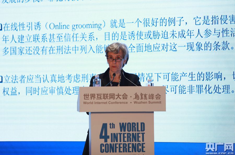 央廣網(wǎng)烏鎮(zhèn)12月4日消息(記者 王永康)今日上午九點,在烏鎮(zhèn)互聯(lián)網(wǎng)國際會展中心雨讀廳進行“守護未來:未成年人網(wǎng)絡保護論壇”。該論壇圍繞“未成年人網(wǎng)絡保護”,邀請中外政府官員、國際組織和青年組織代表、知名學者以及青少年代表進行研討。圖為聯(lián)合國秘書長反對暴力侵害兒童特別代表瑪爾塔·桑托斯·派斯女士發(fā)表題為《互聯(lián)網(wǎng)兒童保護:全球視野下的政策應對》演講。