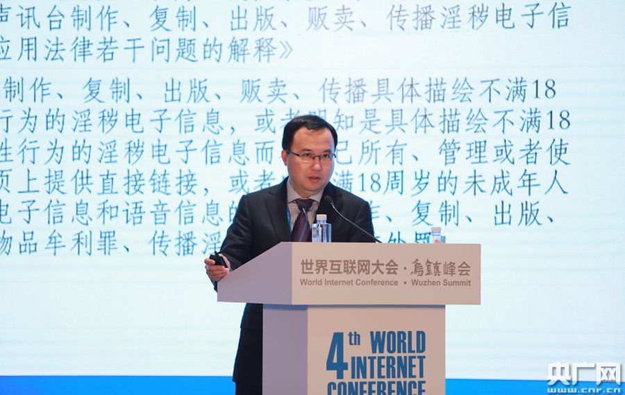 央廣網(wǎng)烏鎮(zhèn)12月4日消息(記者 王永康)今日上午九點(diǎn),在烏鎮(zhèn)互聯(lián)網(wǎng)國(guó)際會(huì)展中心雨讀廳進(jìn)行“守護(hù)未來(lái):未成年人網(wǎng)絡(luò)保護(hù)論壇”。該論壇圍繞“未成年人網(wǎng)絡(luò)保護(hù)”,邀請(qǐng)中外政府官員、國(guó)際組織和青年組織代表、知名學(xué)者以及青少年代表進(jìn)行研討。圖為中國(guó)社會(huì)科學(xué)院大學(xué)副校長(zhǎng)林維發(fā)表主題《未成年人網(wǎng)絡(luò)保護(hù)的司法實(shí)踐》演講。