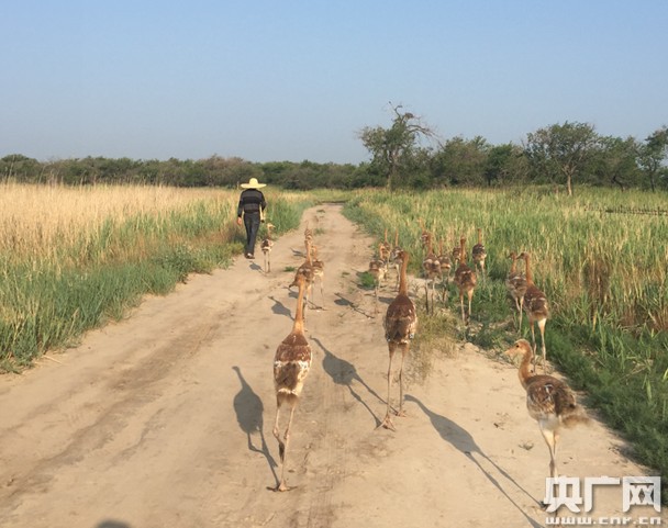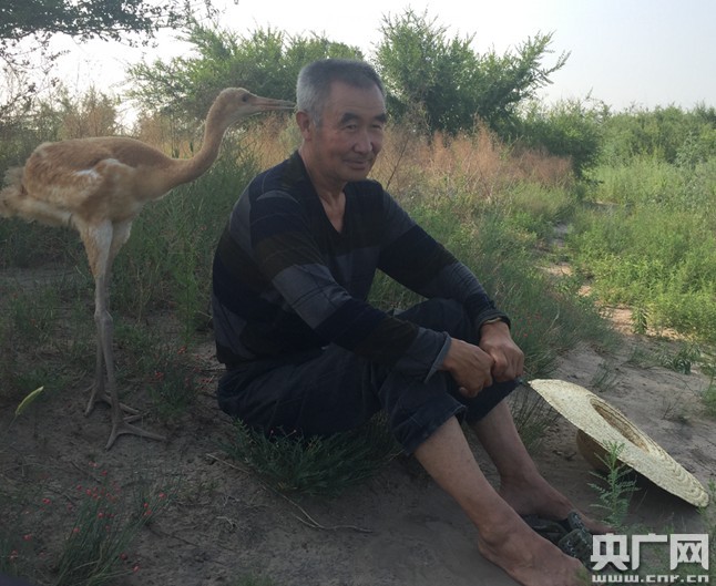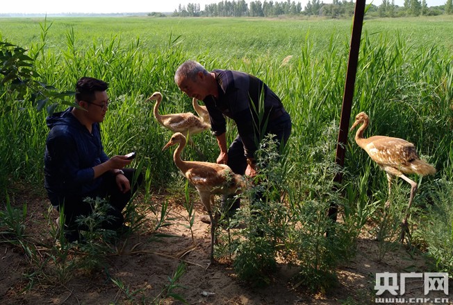 采訪向海保護(hù)區(qū)繁育員時(shí)雛鶴走過來