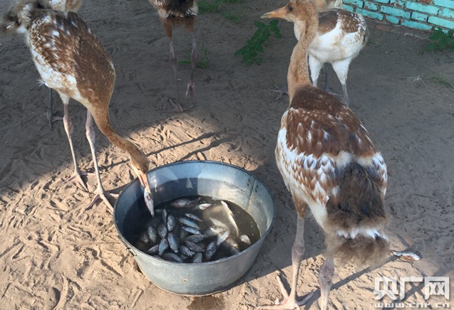 與白天30多度高溫的向海相比,清晨四點(diǎn)的向海仿佛是另外一個(gè)世界。從水桶里舀起一瓢水,來不及吃飯,只匆匆洗了把臉,張秋就開始了一天的工作。先將前一天保存在冰柜中的魚取出后放在手推車?yán)镉镁鈨,“用向海的水緩向海的魚。”再挑出小魚,親手喂給嗷嗷待哺的剛剛破殼的20多只雛鶴,然后快速回到簡陋的宿舍換上長袖迷彩服。張秋騎上摩托車載著記者在向海景區(qū)每個(gè)禽類飼養(yǎng)區(qū)巡查了一圈,這是張秋每天的例行工作。年過六旬的他,依舊是一把摩托車好手,在草叢和樹林間自由穿行,就好像回到了年少時(shí)的歲月。