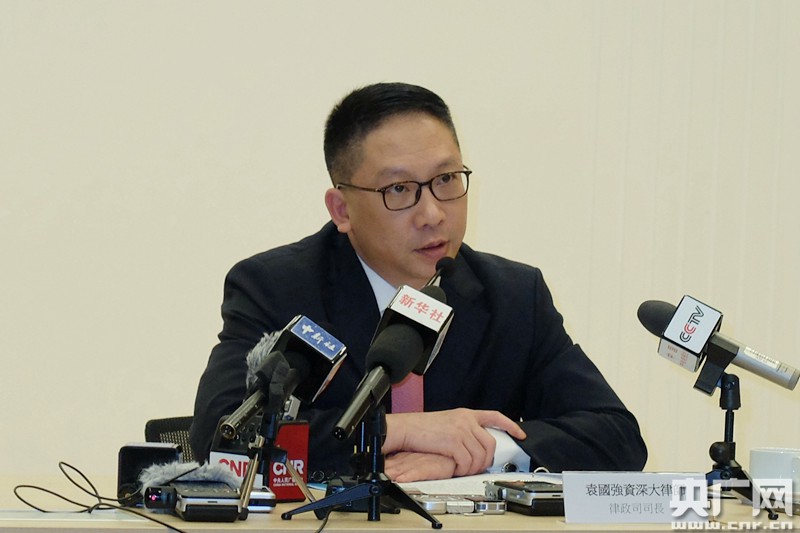香港律政司司長(zhǎng)袁國(guó)強(qiáng)接受記者采訪