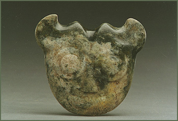 紅山文化的石器以磨制為主,大型石器中富有特征的器物是耜和桂葉形雙孔石刀,器形主要有煙葉形和草履形兩種。桂葉形石刀通體磨光,刃、背部弧形相對稱,這些表明紅山文化中農(nóng)耕經(jīng)濟已比較發(fā)達(dá)。