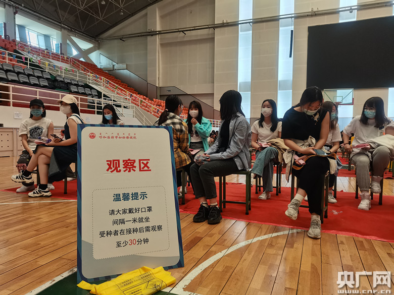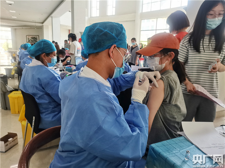 5月18日,內(nèi)蒙古鴻德文理學(xué)院的學(xué)生正在校內(nèi)接種新冠疫苗(央廣網(wǎng)記者 靳敏 攝)