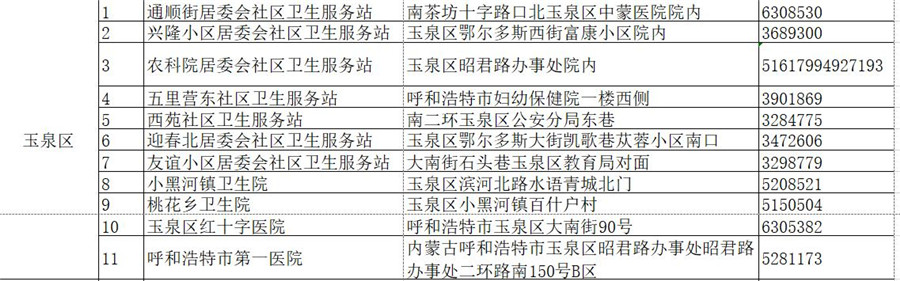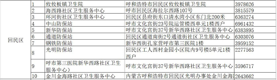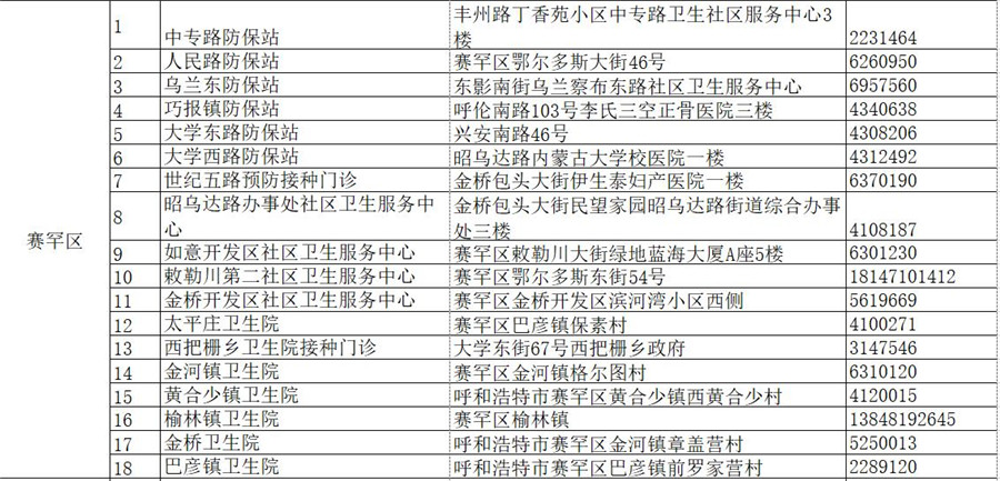 賽罕區(qū)疫苗接種點(diǎn)名單