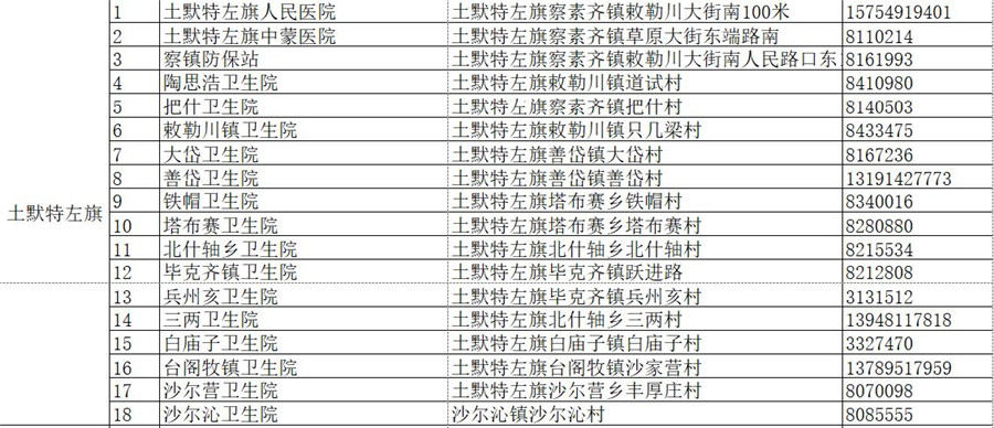 土默特左旗疫苗接種點(diǎn)名單