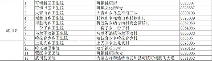 武川縣疫苗接種點(diǎn)名單